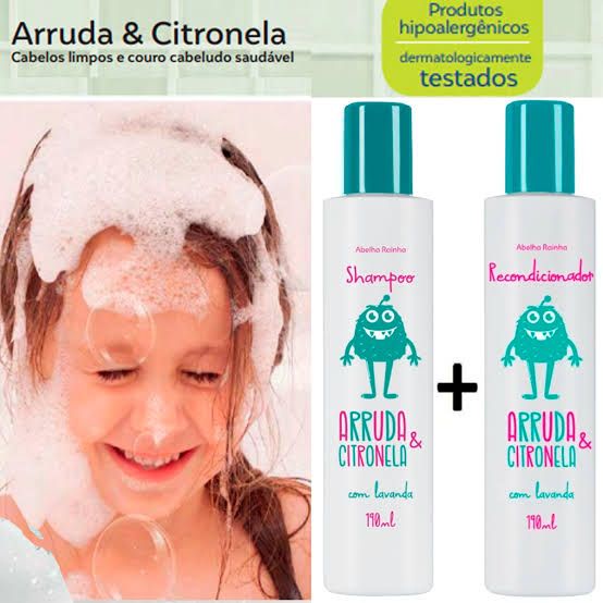 Kit Mata Piolho e Lêndeas ,Arruda e Citronela Shampoo ,Recondicionador, Spray e Pente Abelha Rainha