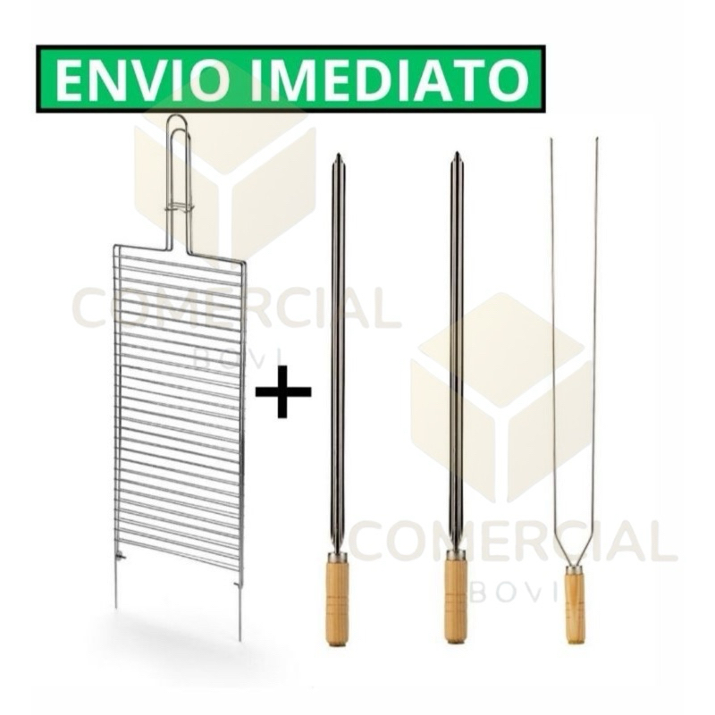 kit churrasco 1 grelha + 3 espetos de 65 cm