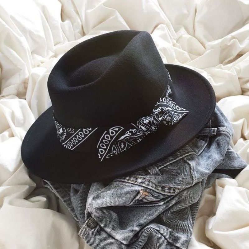 Chapéu Preto Fedora com Bandana