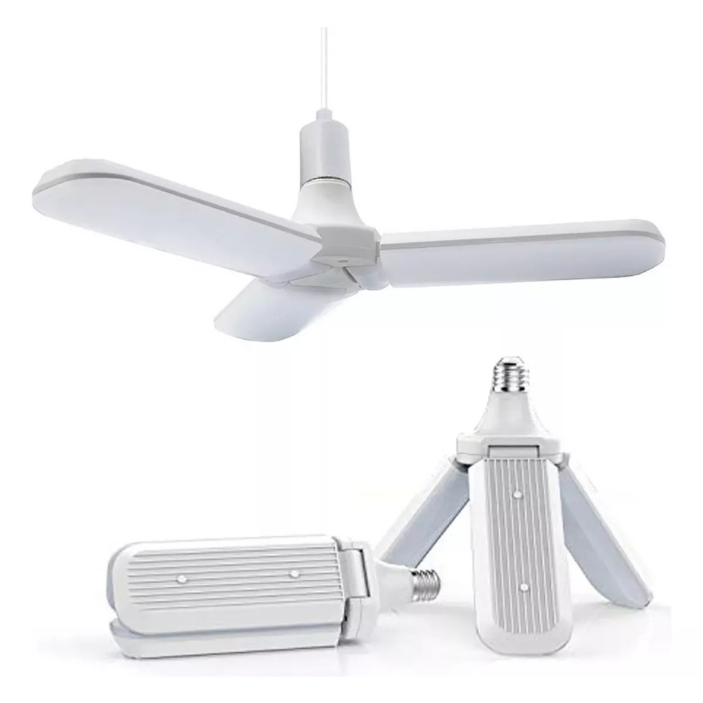 Lâmpada Bulbo LED Pétalas 45W Dobrável Ajustável Luminária Fan Blade de 3 Folhas/Pás E27 Bivolt