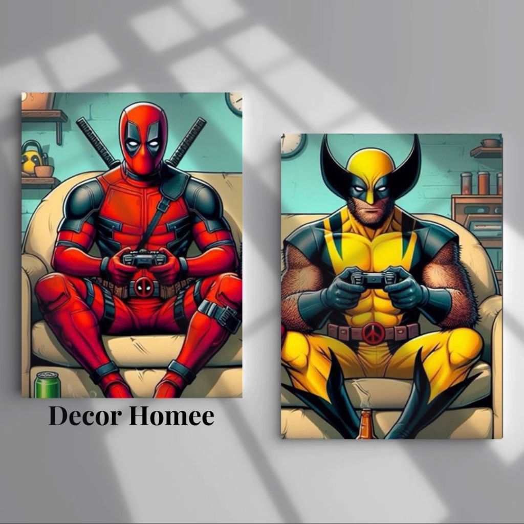 Kit de 2 Quadros Placas decorativas Deadpool & Wolverine Decorção de quarto, casa, sala, infantil herois