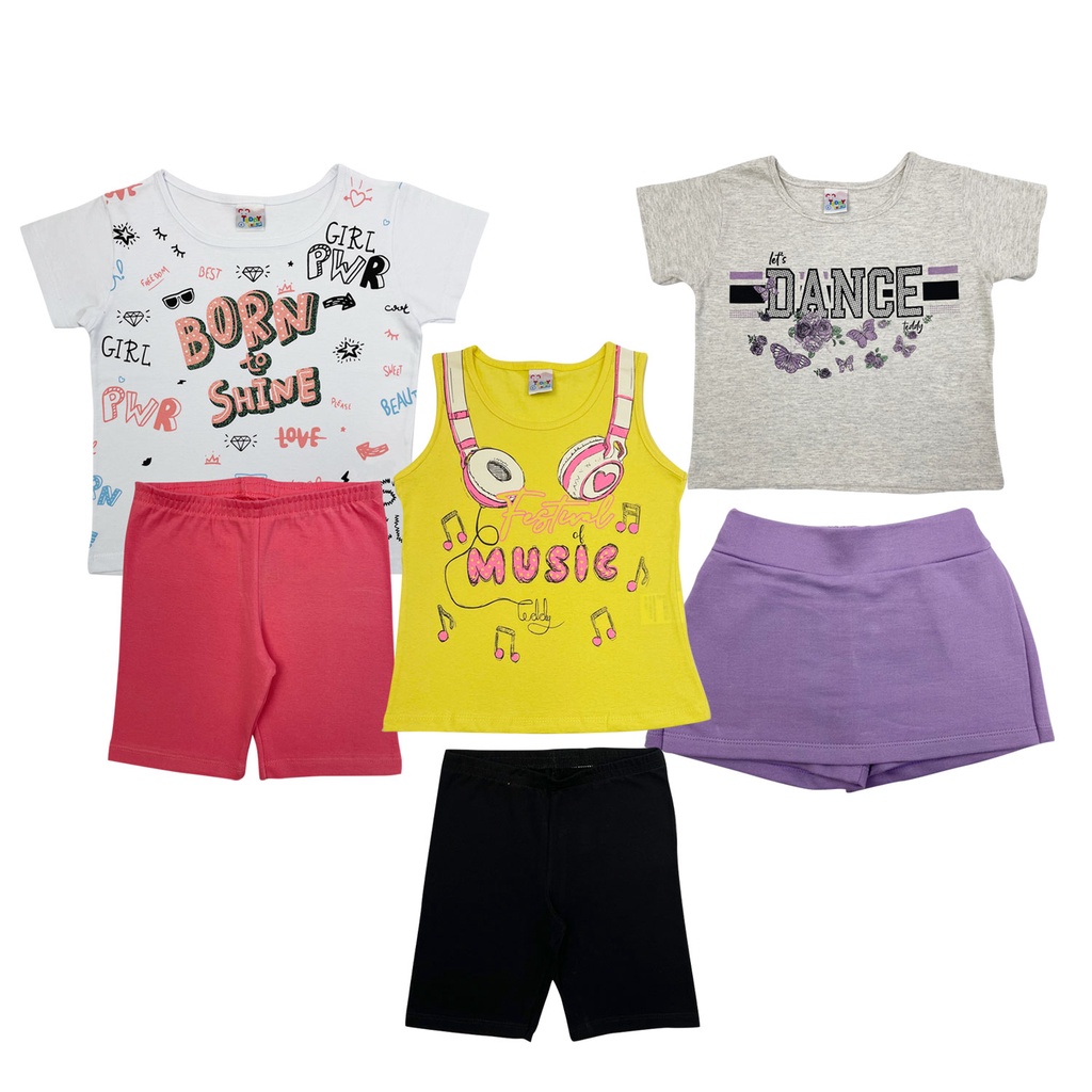 Kit SORTIDOS Bebe Barato 6 Peças de Roupas Infantil Menina 3 Camisetas 3 Bermudas Promoção Kit com 3 Conjuntos de Roupa Infantil Menina Verão Feminino