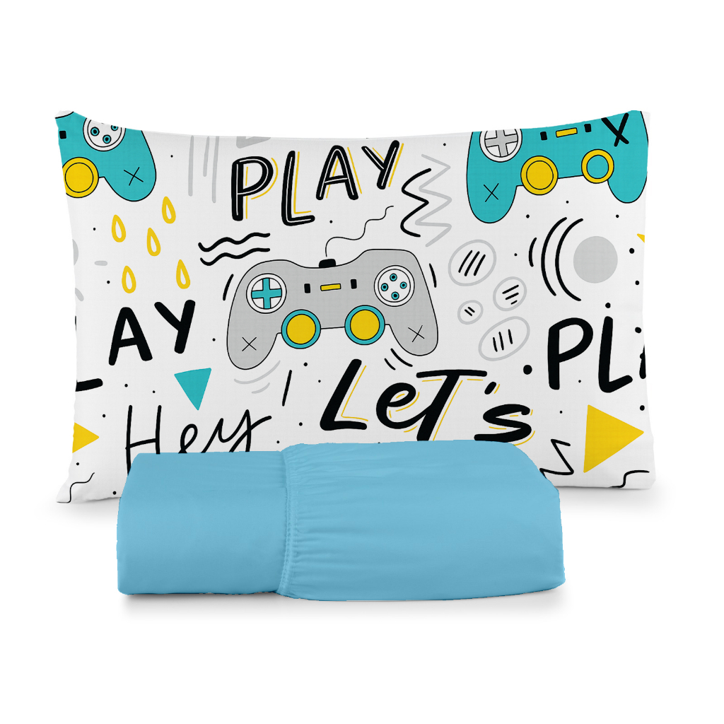 Jogo de Lençol Solteiro Gamer 2 Peças com Fronha Estampada Controle de Videogame