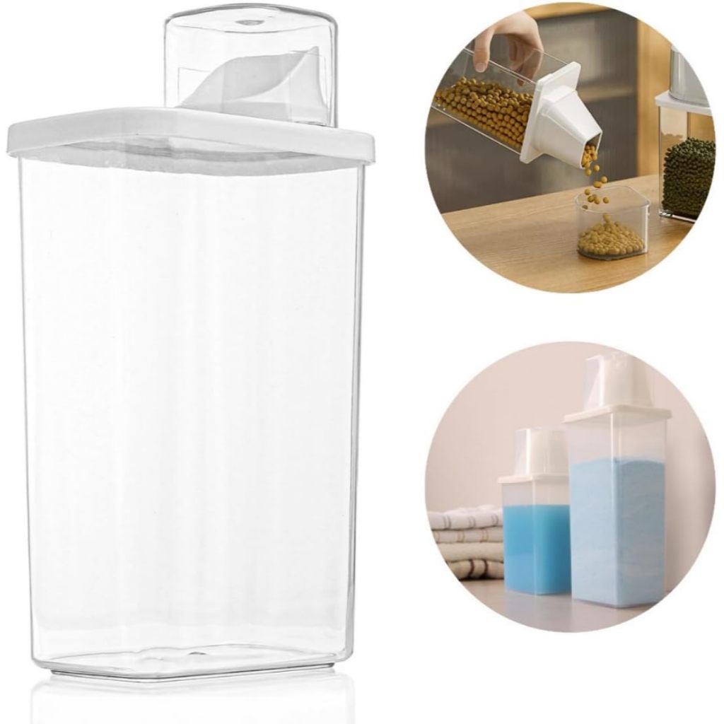 Pote Hermético Com Copo Medidor Porta Sabão em Pó Amaciante Detergente Em Polipropileno Resistente