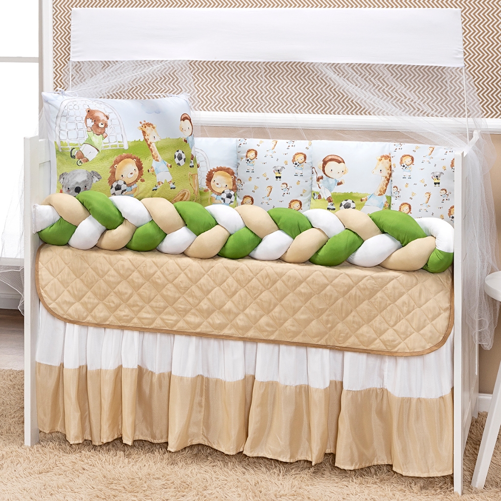 Kit de Berço Safari Baby Verde 10 Peças com Protetor Lateral Trança