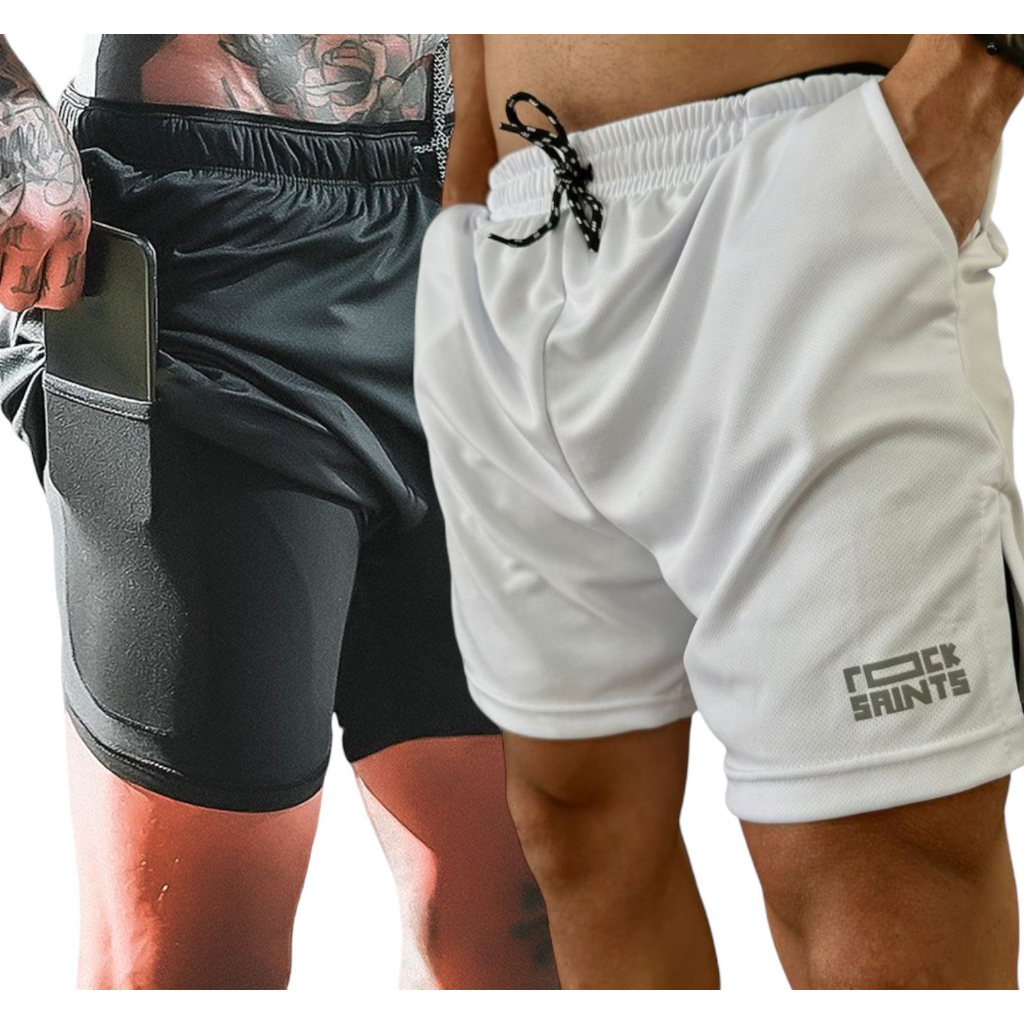 Kit 2 Bermuda Academia Termica Short Masculino 2 em 1 com Compressão