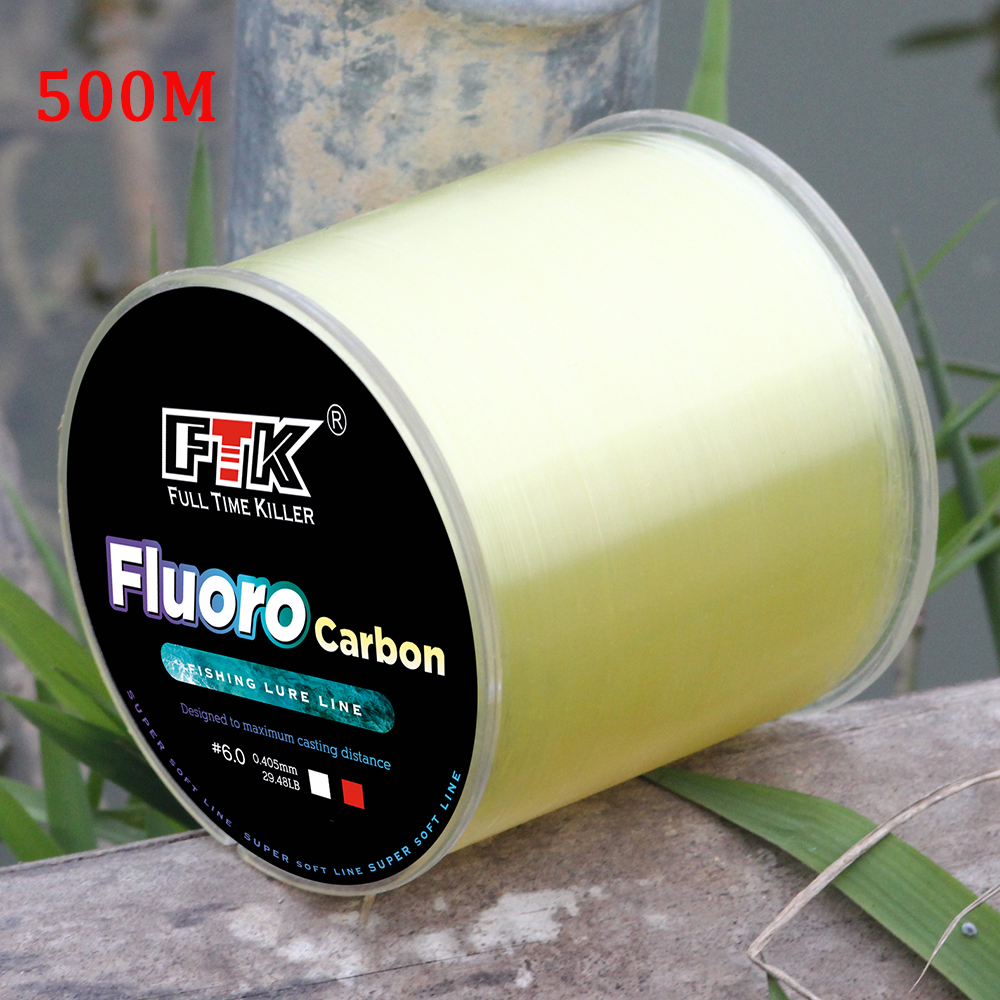 FTK 500m Linha De Pesca Em Nylon De Cor Amarela Com Revestimento De Fibra De Carbono Mosca Monofilamento Carpa