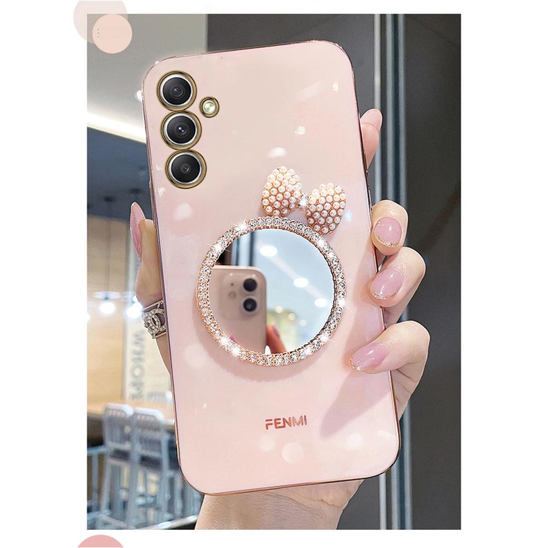 A 34 Caixa De Telefone Com Espelho De Diamante Para A34 A54 5G A21S A20S A10 A10S A12 A13 A14 A750 A23 A01 A02 A03 A04 Tampa Traseira Do Suporte