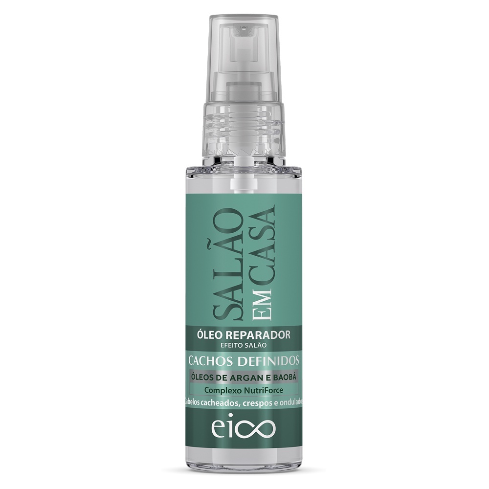 Eico Óleo Reparador e Proteção Térmica Efeito Salão Em Casa Hidrata e Nutre 60ml Óleo Argan Cacheado Crespos e Ondulados