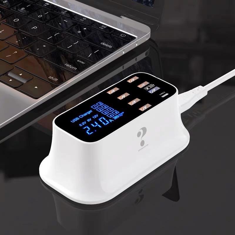 Carregador Inteligente Com 8 Portas Tela Led USB Charger Estação de Carregar Multiportas 40W Qc 3.0