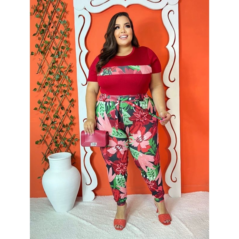 Conjunto Plus size Calça jogueer com Blusa Estampadas 46 ao 54