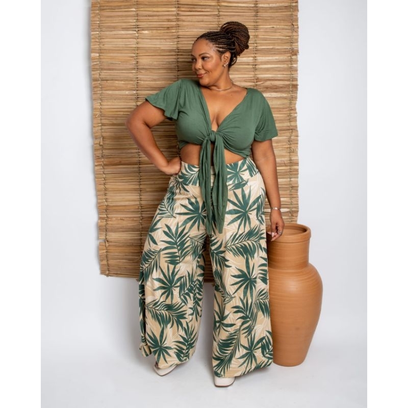 Conjunto Plus Size De Calça e Cropped, Crepe de Malha, Veste do 46 ao 52