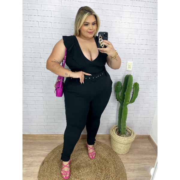 Conjunto Plus Size Calça Crepe de Malha com Blusa Canelada | Veste do 46 ao 54