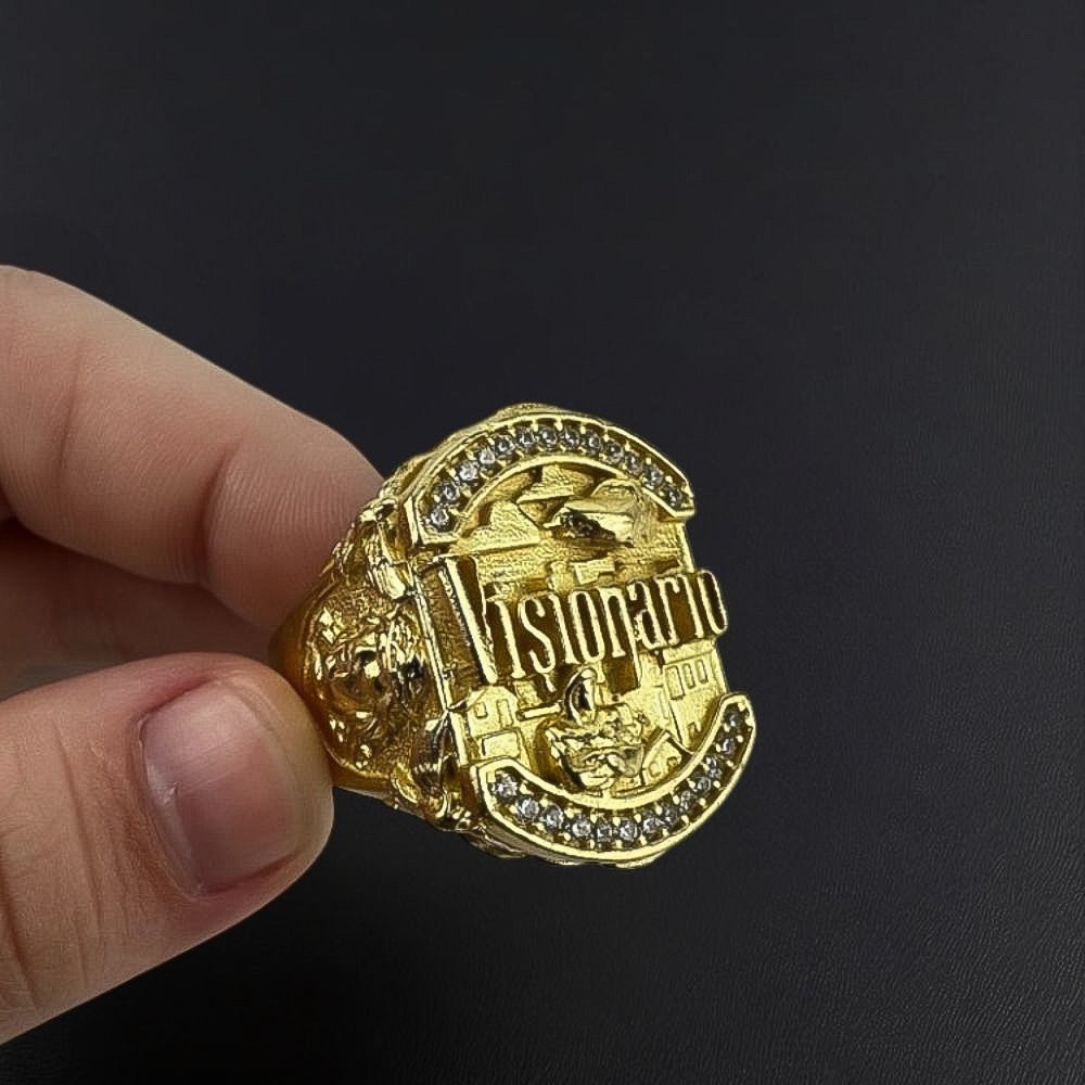 Anel Dedeira Visionário Ajustável | Moeda Antiga | Face de Cristo + Trevo | Não Escurece