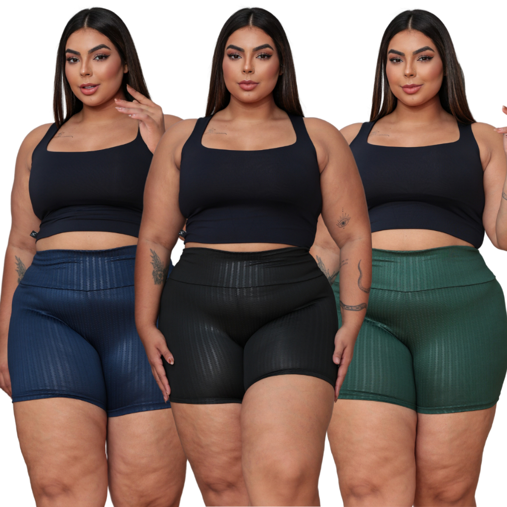 Kit C/3 Shorts Suplex 3D Plus Size Cintura Alta Academia