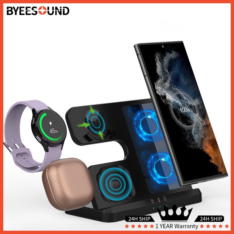 Novo Suporte De Carregador Sem Fio 3 Em 1 Para Samsung Galaxy S23 S22 21 Ultra S20 30W Dock Station Watch5 Pro Holder Buds2