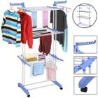 Varal Torre De Chão 3 Andares Roupa Portátil Dobrável Alumínio Retrátil Compacto 4 Rodas