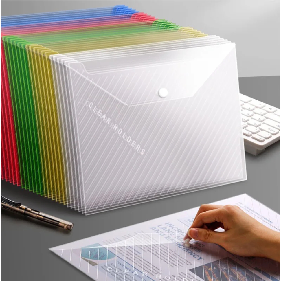 Kit 10/20/30 Pastas de Envelope com Botão Ofício/A4 Acp Transparente