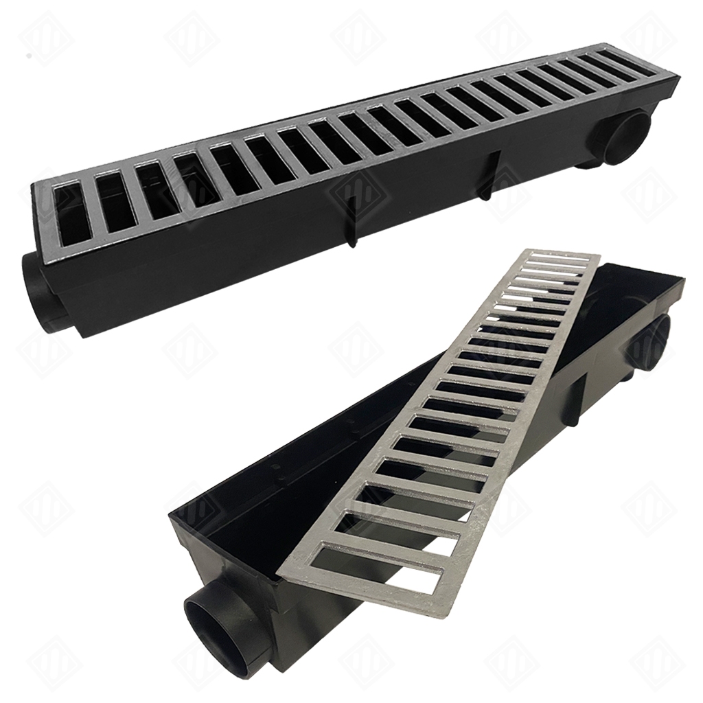 1 Metro Ralo Linear Sifonado Pluvial Com Grelha Em Alumínio (2 PÇ 6X50CM) P/QUINTAL PISCINA JARDIM