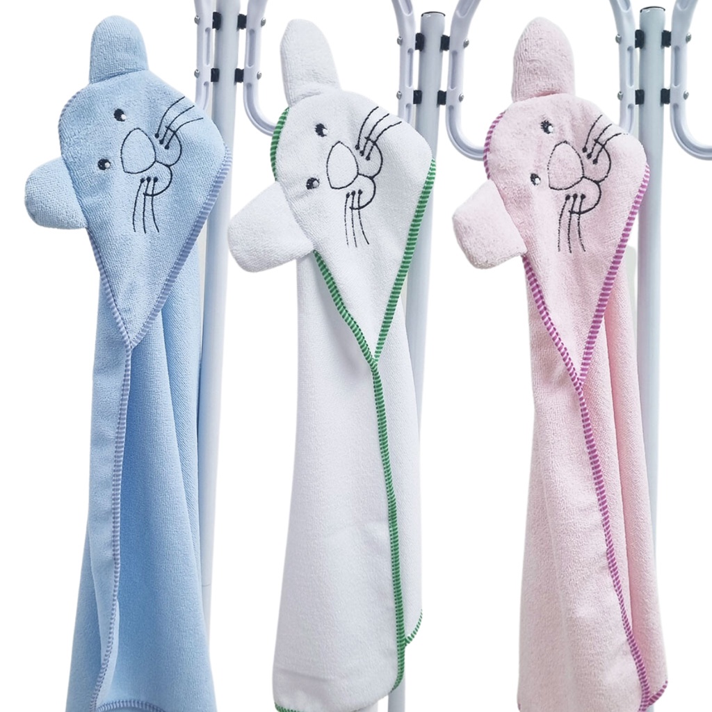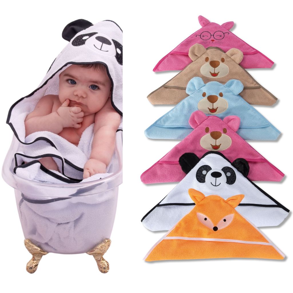 Toalha de Banho Felpuda Para Bebê Com Orelhinha no Capuz Infantil De Bichinho Bordada Menino e Menina