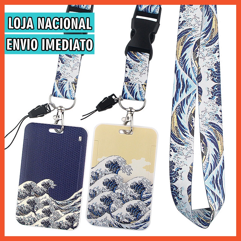 Tsunami Arte Japonesa Japão - Chaveiro com Cordão de Engate e Porta Crachá