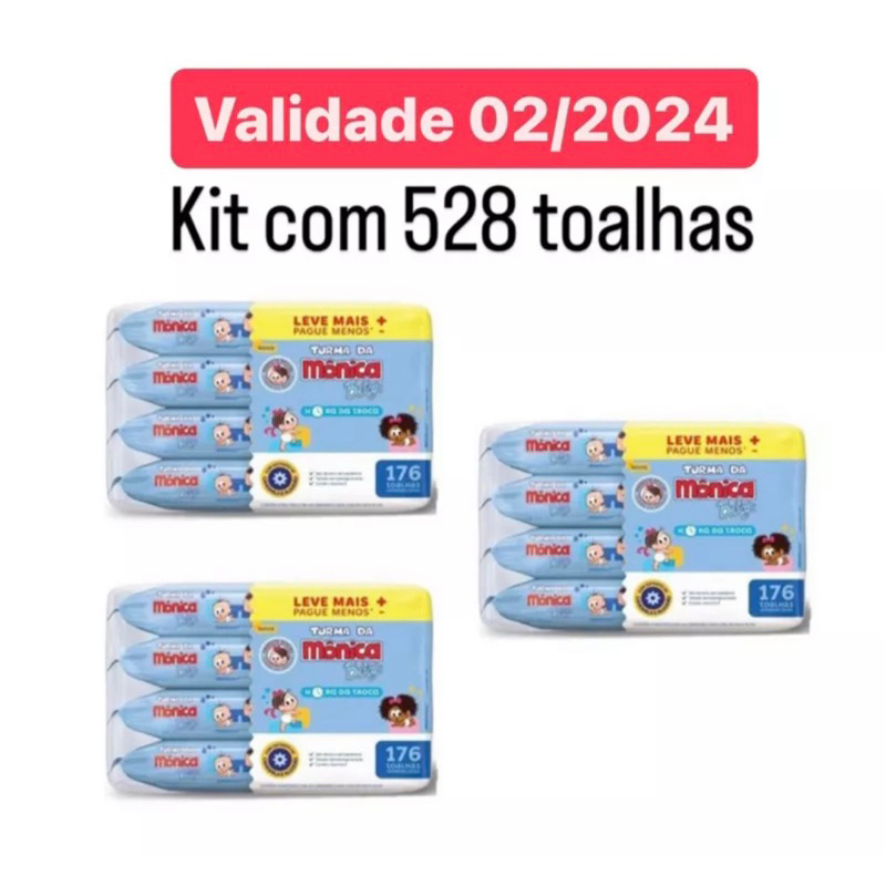 KIT COM 12 PACOTES DE LENÇO UMEDECIDO TURMA DA MÔNICA C/44 UNIDADES