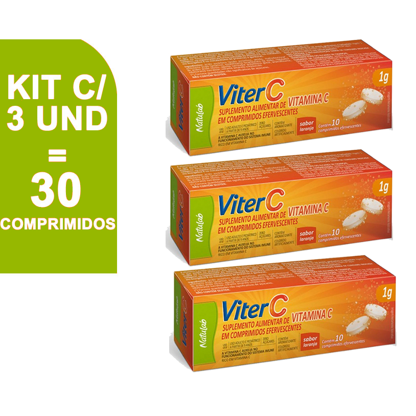 Kit com 3 Viter C - Vitamina C 1G Com 10 Comp. Efervecentes Natulab