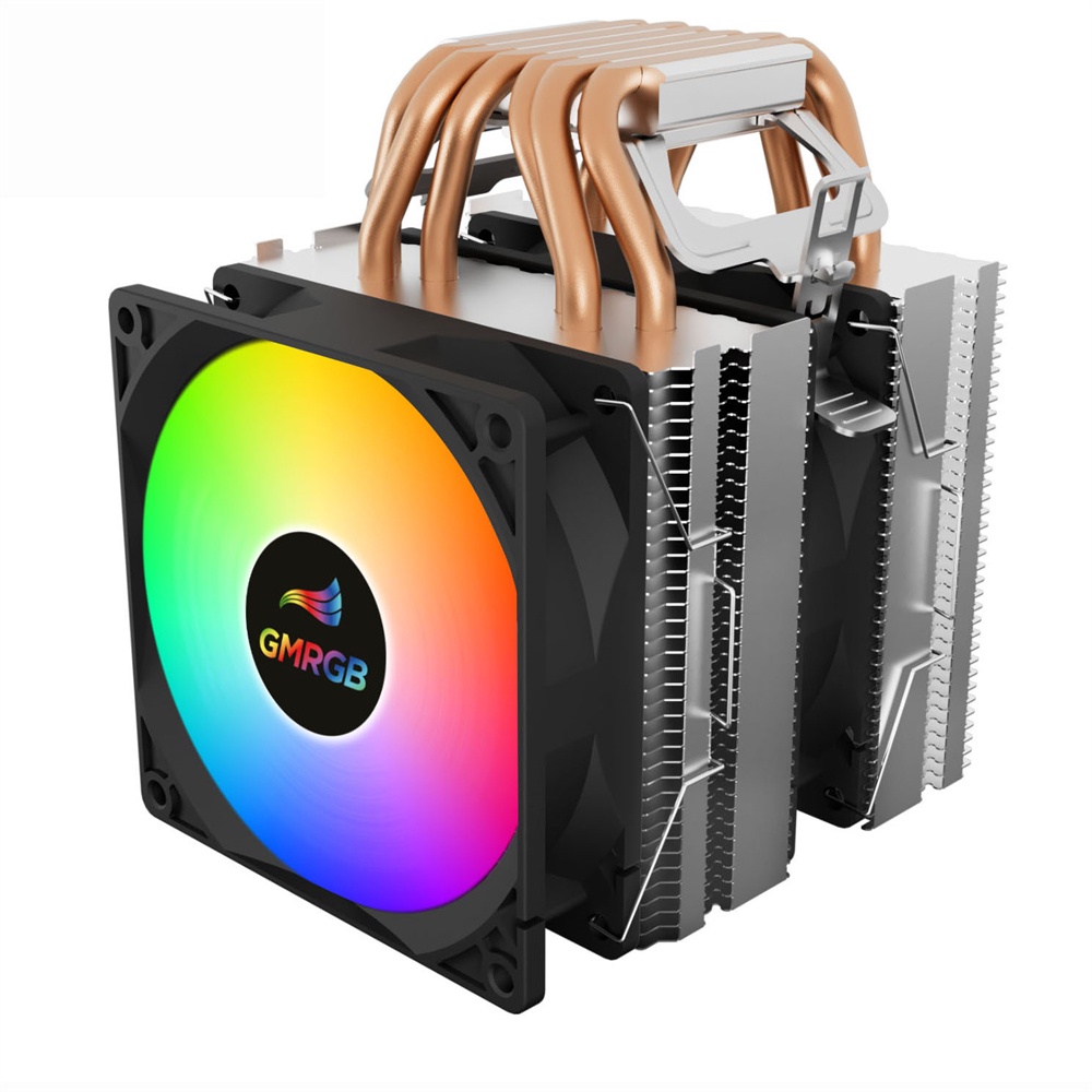 GMRGB GMF-602 Air Cooler Processador Duplo Pc Cpu ARgb Intel Amd Universal com pasta térmica