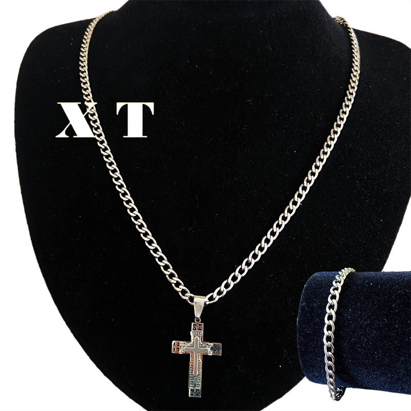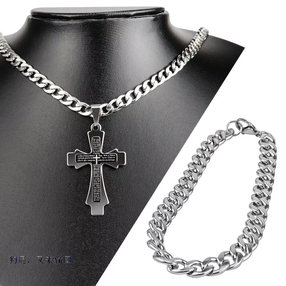 Kit Corrente e Pulseira cordão aço inox masculino Com Pingente de Cruzinha Aço inoxidável316L