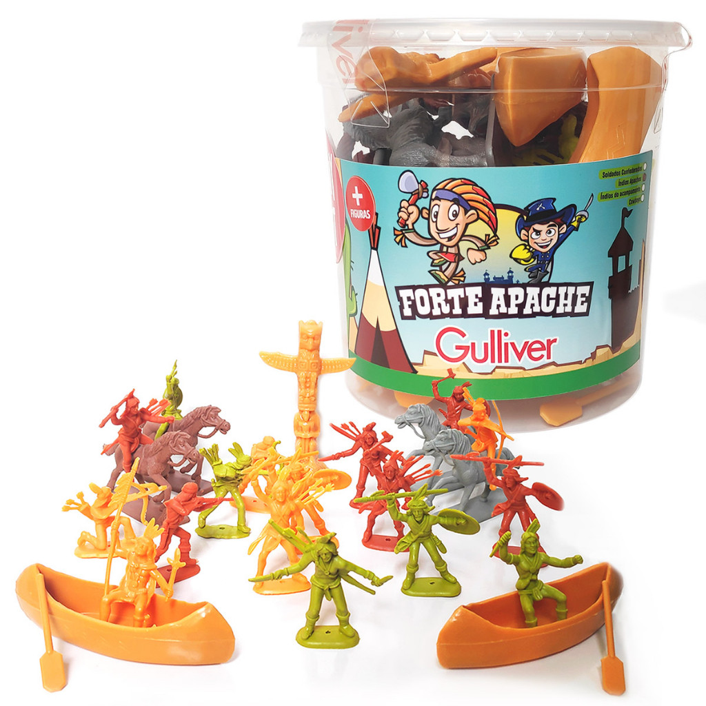 Balde Forte Apache Miniaturas Índios Apaches Cavalos Canoas Totem Brinquedo Colecionáveis Gulliver