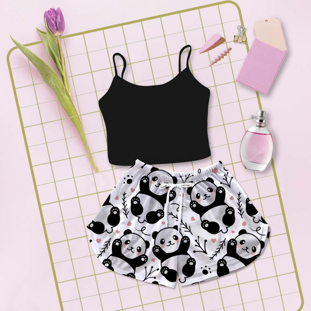 Cropped Preto Baby Doll Feminino Estampa Pandinha Preto