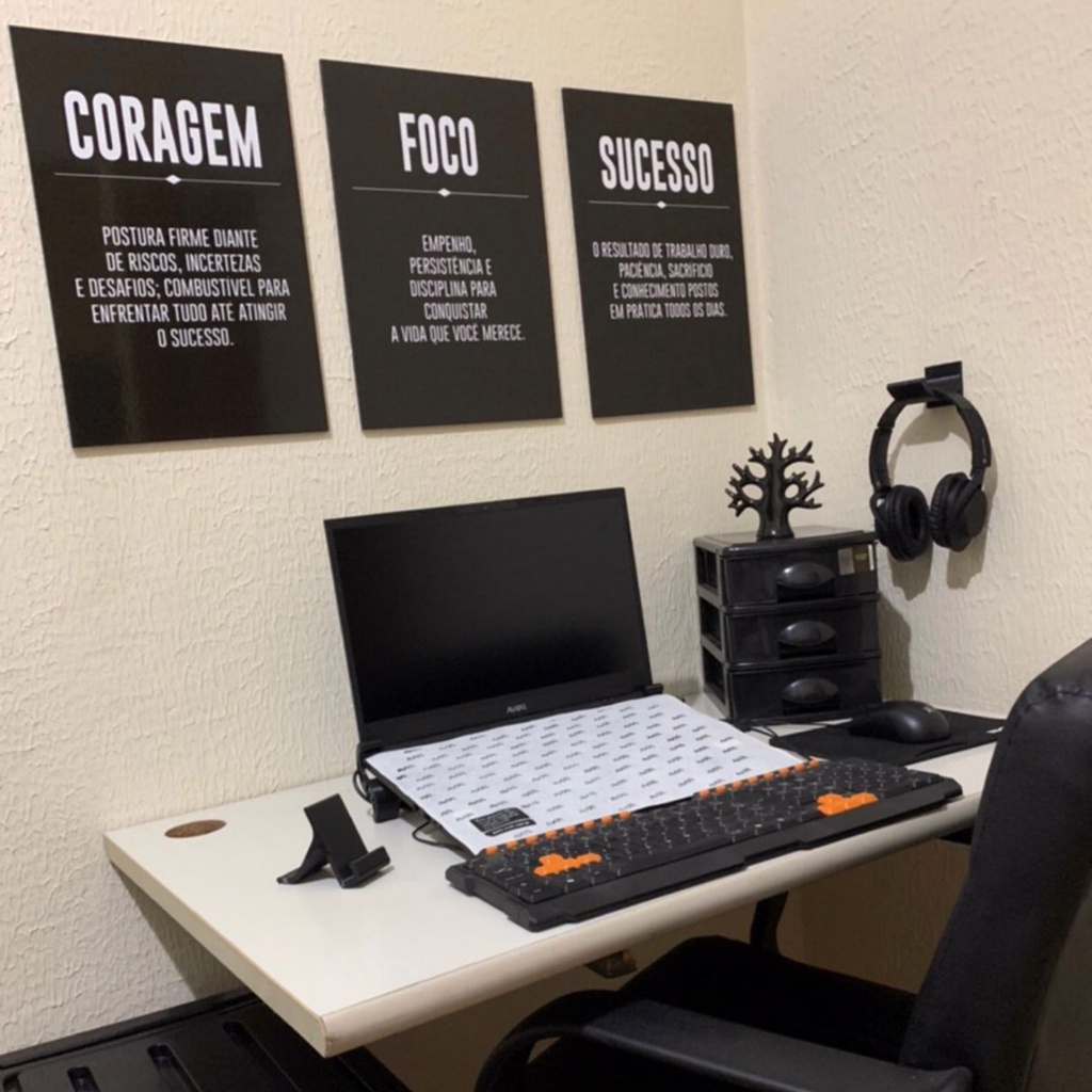 Coragem - Foco - Sucesso - Quadros Decorativos - Placas Decorativas - Decoração para Escritório - MDF06mm