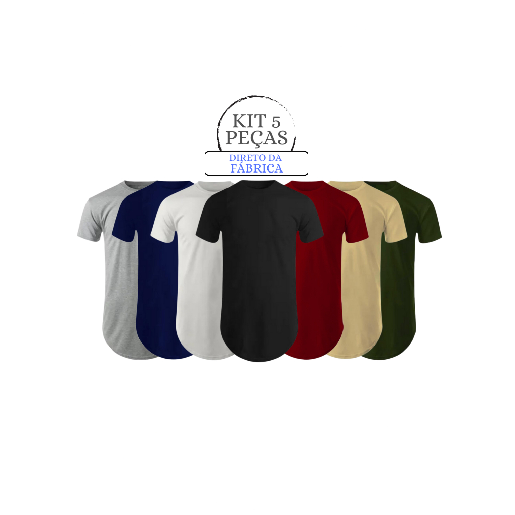 Kit 5 Camiseta Masculina Longline Oversized Algodão Premium