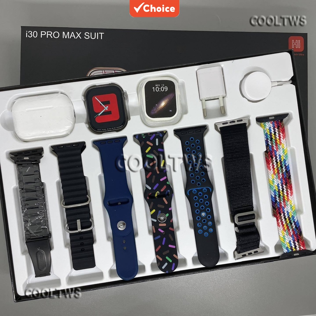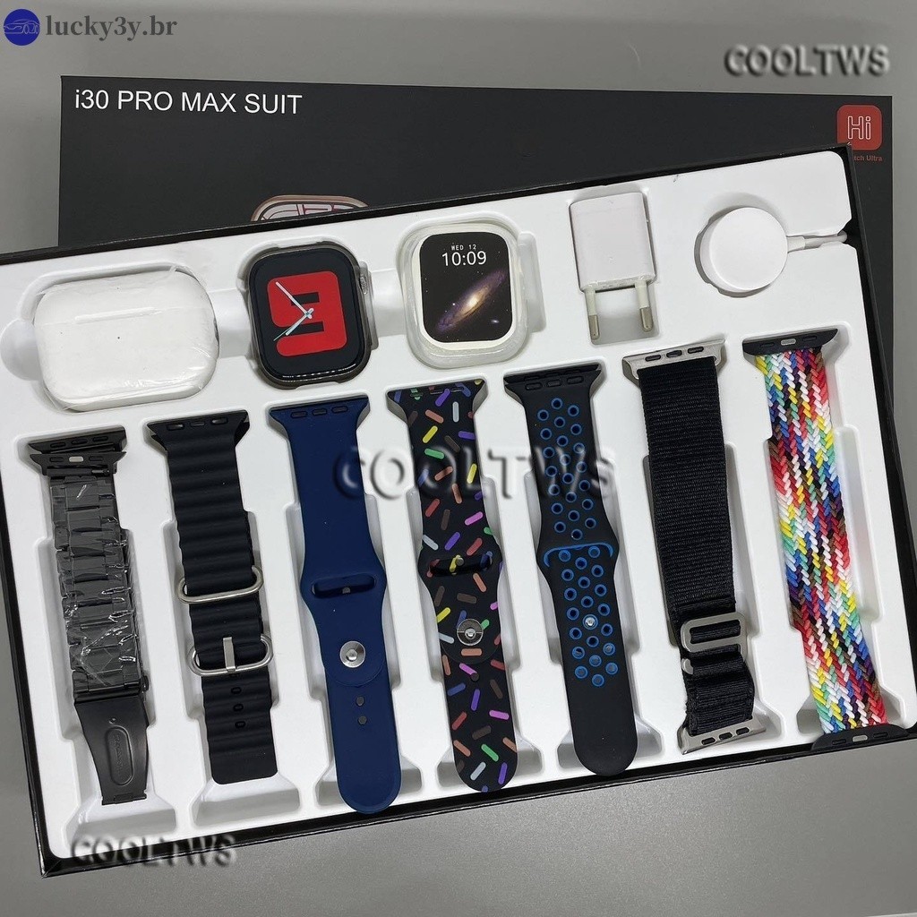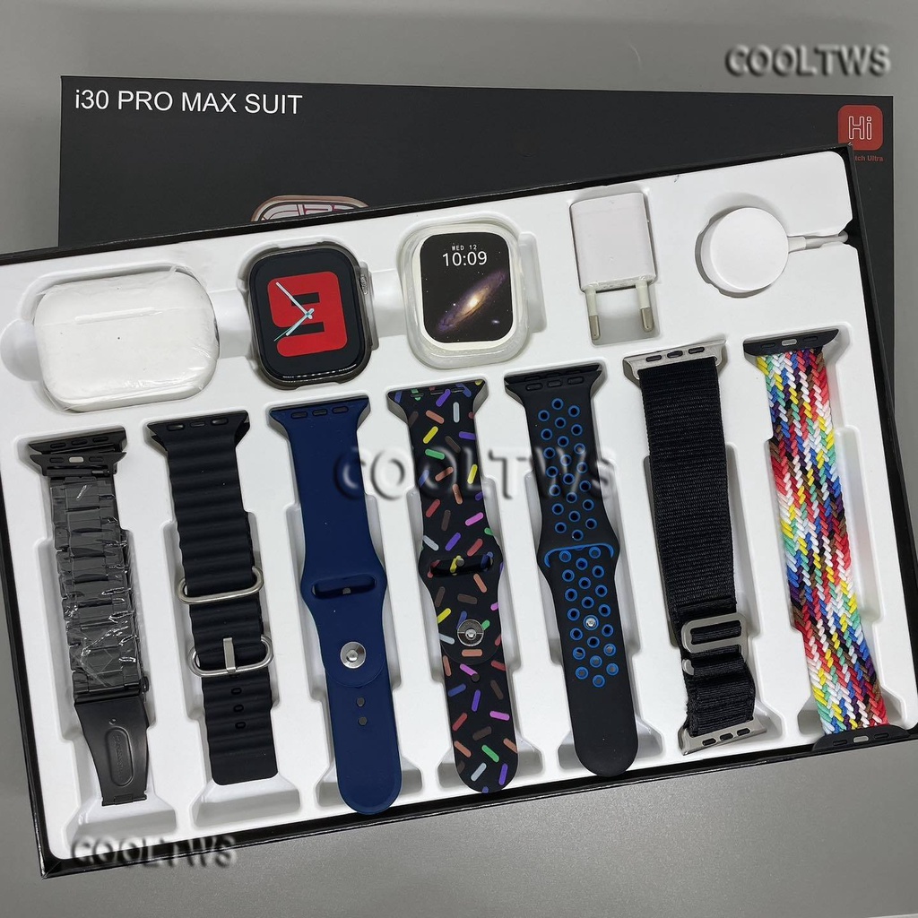 2023 Novo ARRIVAL i30 pro max SUIT Smartwatch Relógio Com Earbuds BOX 11 Em 1 Conjunto De Adaptadores De Carregador Sem Fio Smartband 9 Smart Bracelets Fitness
