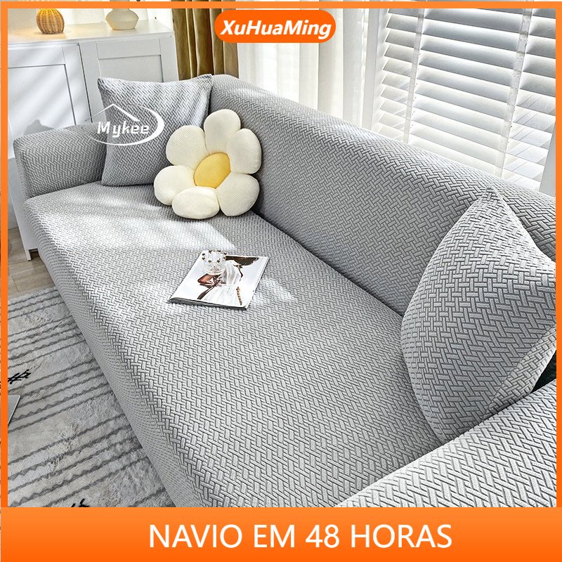 Sofá Elástico À Prova D'água Capa De Almofada De Velo Jacquard Seccional 1/2/3 Lugares Em Forma De L Universal Móveis Protetores De Casa Decoração De Sala De Estar