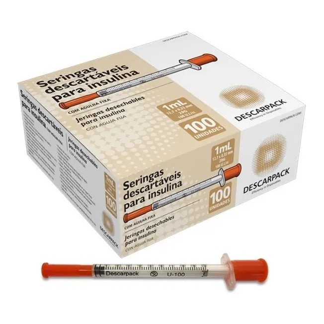 Seringa Insulina 1ml com Agulha 13x0,45mm 26g Descarpack C/100 Unidades