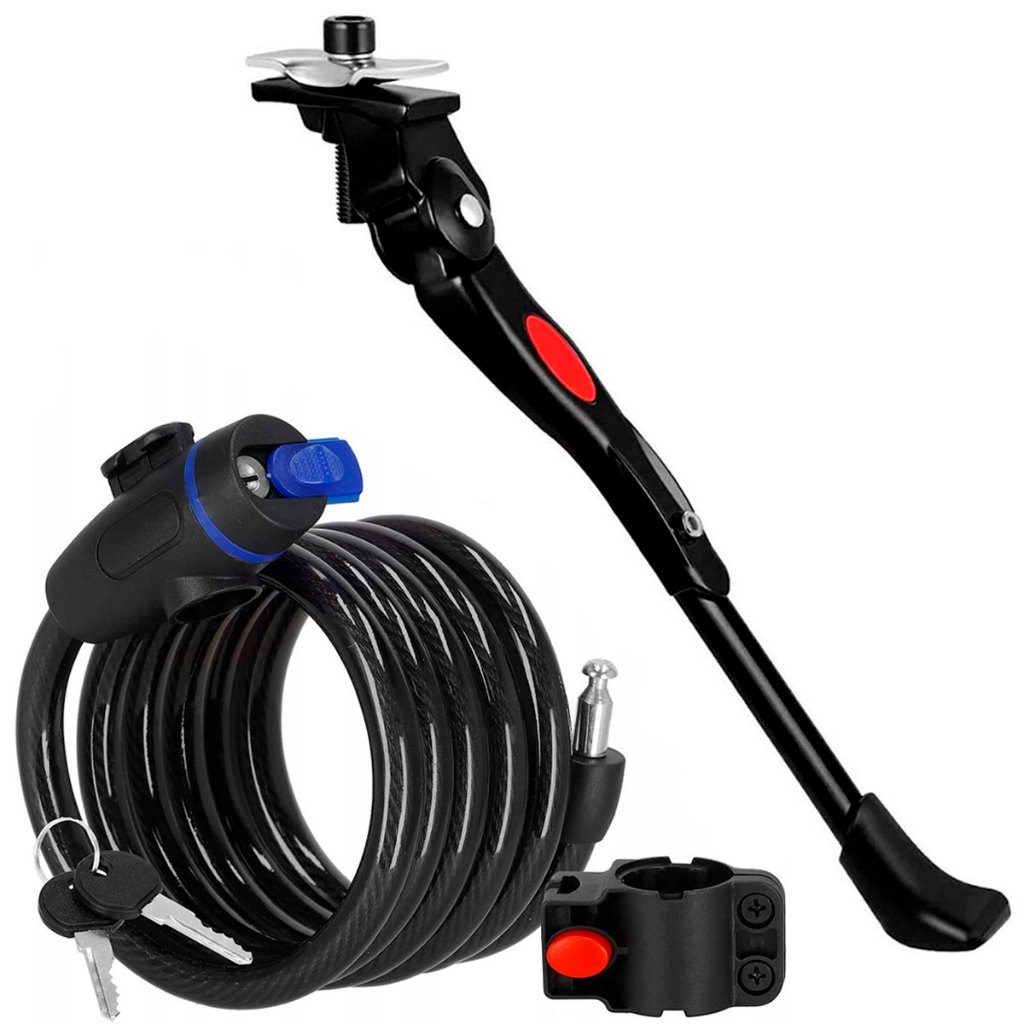 Kit Descanso Apoio Pezinho Para Bicicleta + Trava De Segurança Cabo De Aço Com Cadeado Para Bike Moto