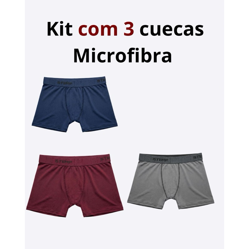 Kit com 3 Cuecas Boxer Adulto em Microfibra Lisa Cueca Box Masculino com Forro Elástico Exposto.