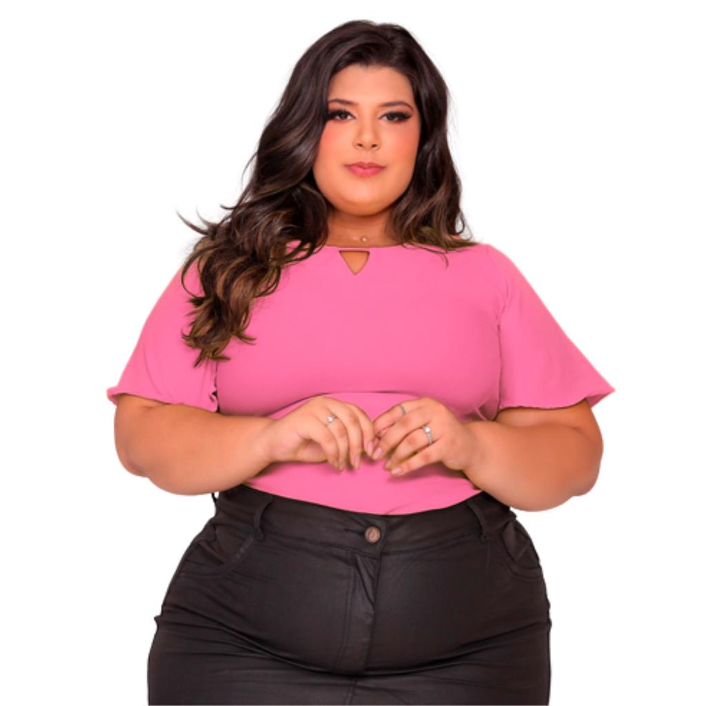 Blusa Feminina Manga Curta Vazada Plus Size Viscolycra Cores Lisas GG 44 48 Modelo 001