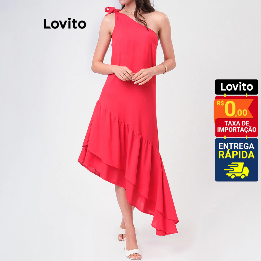 Lovito Vestido casual liso com babados em cascata para mulheres LNE55136