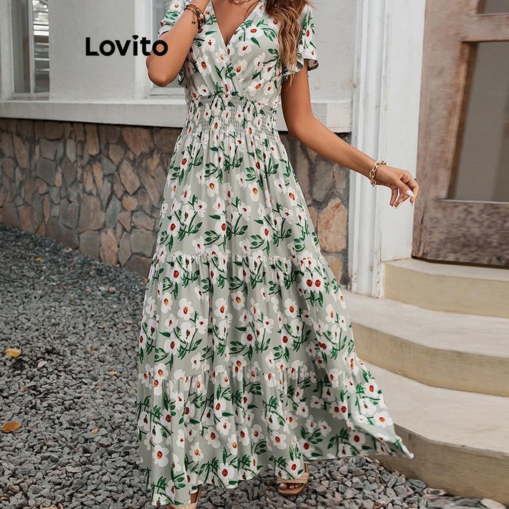Lovito Vestido casual Ditsy floral em camadas com babados e babados para mulheres LNL56184