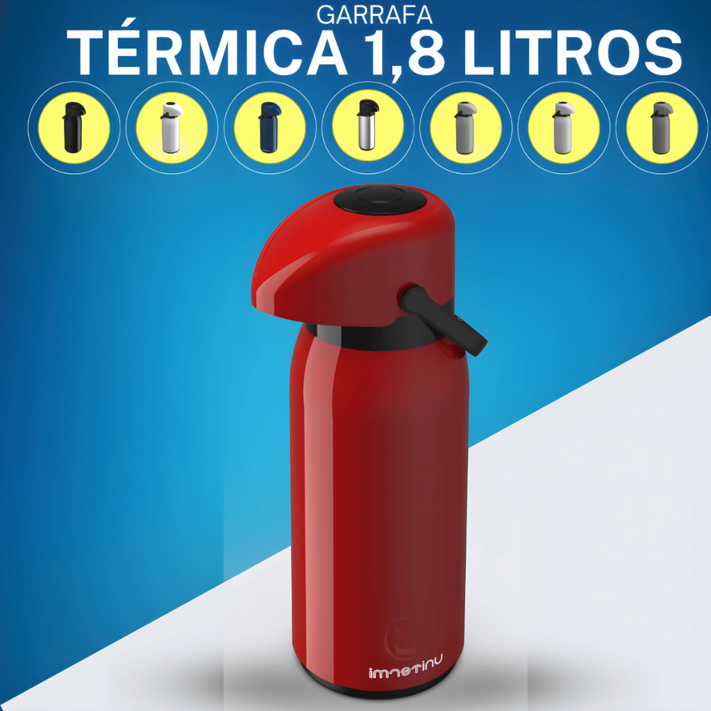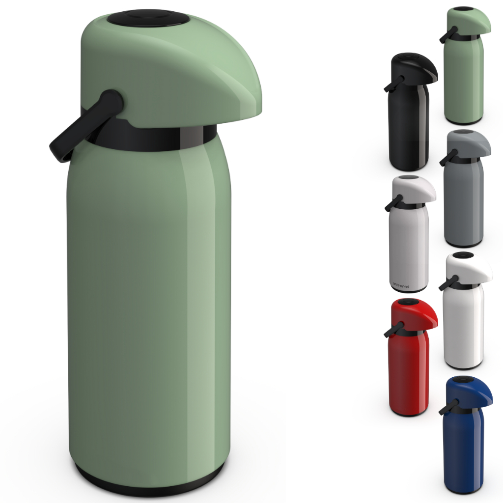 Garrafa de café Térmica com Pressão Verona de 1,8 litros unitermi Café Chá Cores Vermelha Verde Magenta Preta Branca Amarela Azul Marinho Cinza