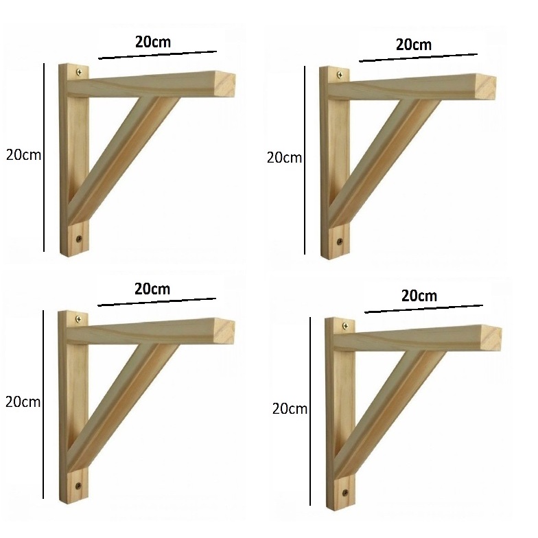Kit 4 Mão Francesa de Madeira Pinus + Buchas e Parafusos 20x20