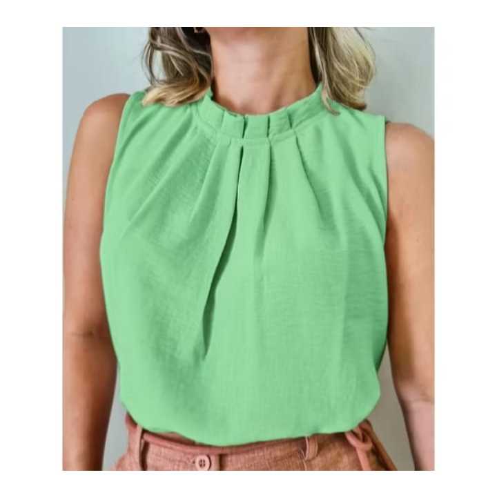 Blusa regata Feminina Gola Alta Tecido Duna Elegante e Leve para Verão Moda Casual ou Social