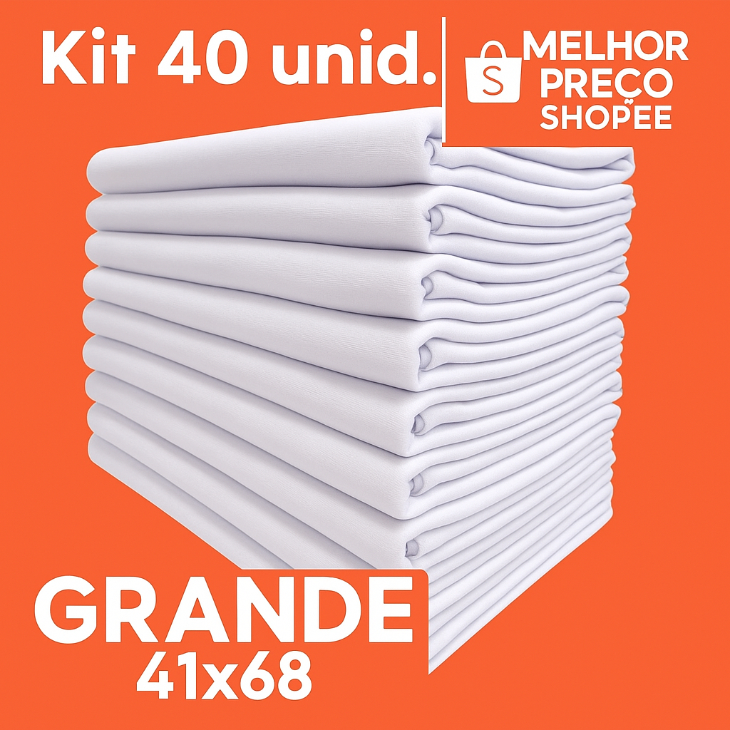 Kit 40 Pano De Prato Atacado Branco Liso GRANDE 100% Algodão - Cozinha e Copa Bainha Toalha Multiuso