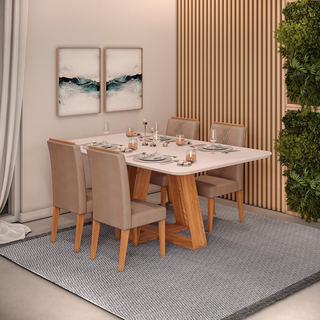 Conjunto de Sala de Jantar 4 Cadeiras Tampo SEM VIDRO 1700x900 DJ Móveis Kiara Carvalho Yasmin Kraft