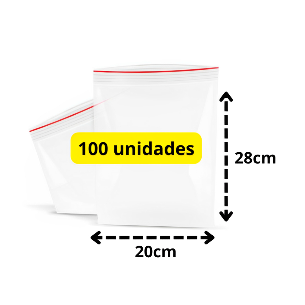 Saco ZipLock 100 Unidades 20x28cm Para Freezer Geladeira Hermético Abre E Fecha Saquinho Plástico