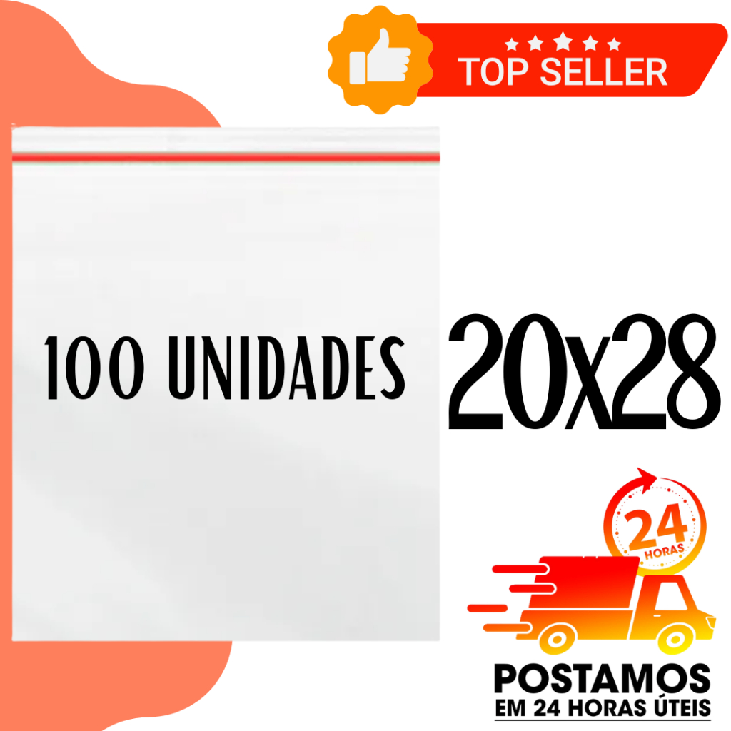 Saco ZipLock 20x28cm Embalagem 100 Unidades Freezer Geladeira Hermético Abre E Fecha Saquinho Plástico