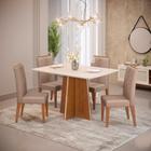 Conjunto de Sala de Jantar 4 Cadeiras Tampo Curvo Dj Moveis Kiara Carvalho Yasmin Lunar