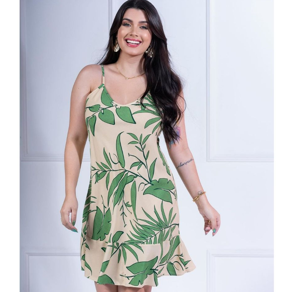 vestido alça fina soltinho feminino moda viscose rodado regulável curto estampado plus size casual